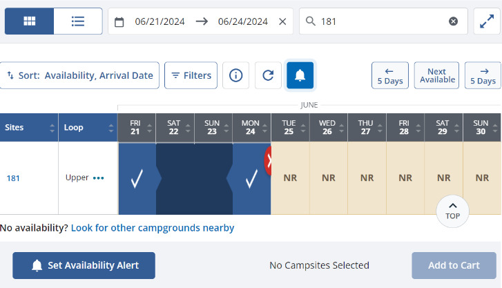 The site and dates you choose play a huge role in your success. In my case, I wanted three nights over a weekend in June. I chose Upper