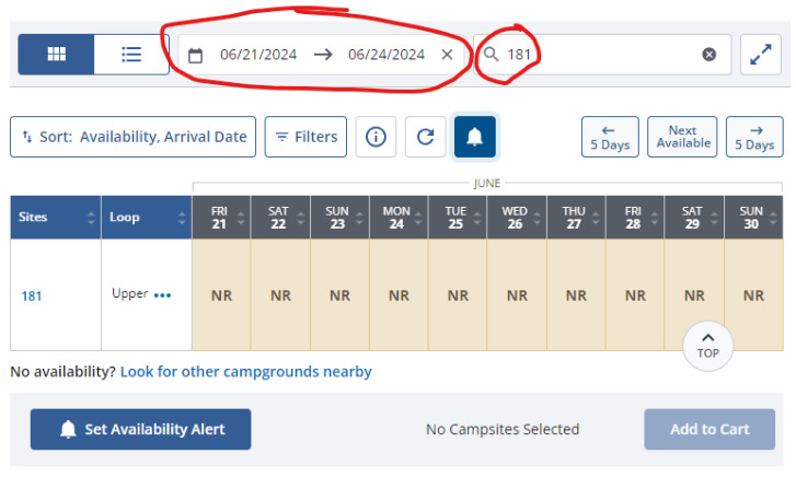 hope that the North Pines sites would be released before we departed on Thursday. Sure enough, when I checked the webpage Wednesday